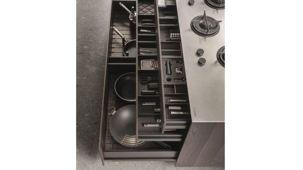 Utilizamos os melhores sistemas de gavetas disponíveis no mercado, permitindo uma personalização absoluta do interior de acordo com as necessidades e preferências estéticas.