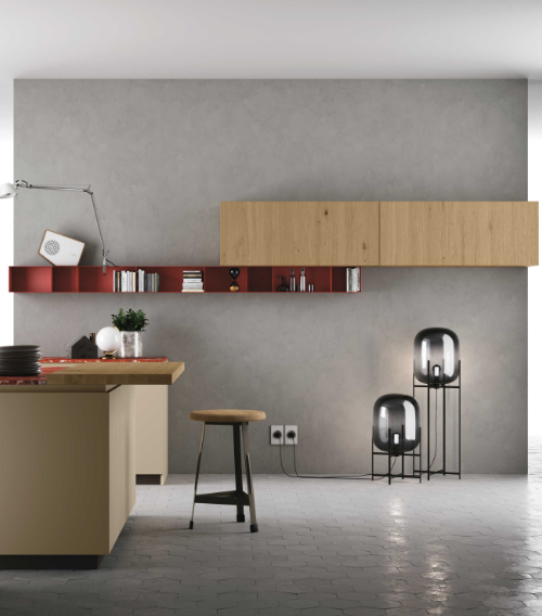 Um sistema de mobiliário de cozinha baseado em materiais e texturas naturais.